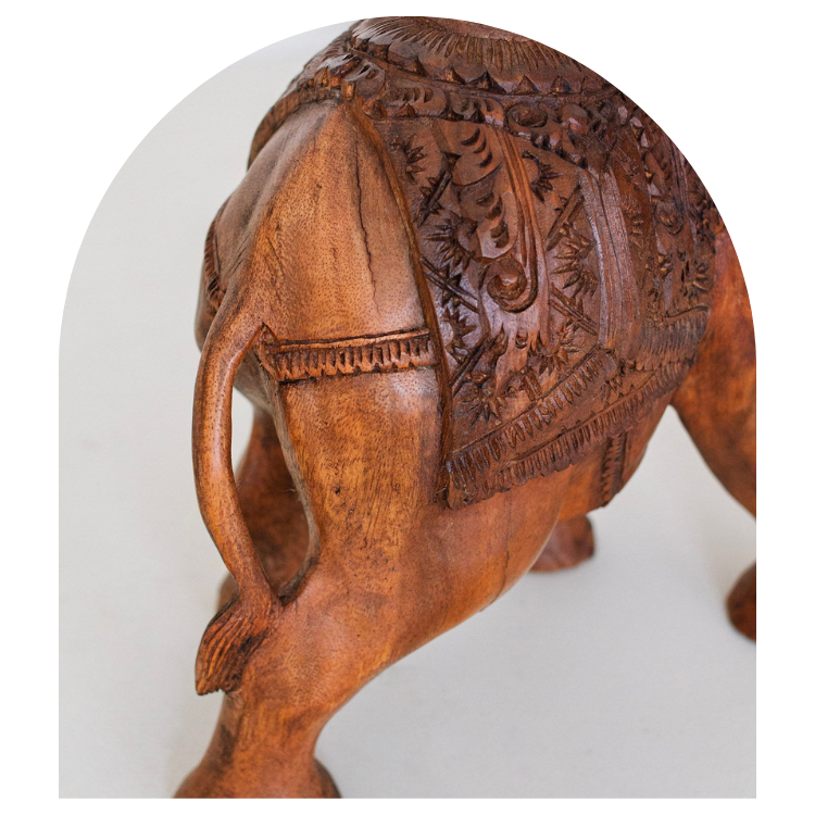 Handcrafted Wooden Elephant Statue with Ornate Carvings - Symbol of Wisdom and Good Fortune